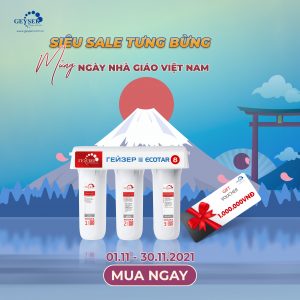 Và đặc biệt trong tháng 11 này, Geyser Việt đang đang cho chương trình “SIÊU SALE TƯNG BỪNG MỪNG NGÀY NHÀ GIÁO VIỆT NAM”. Hãy nhanh tay săn ngay ưu đãi để nhận được những phần quà hấp dẫn khi mua các sản phẩm máy lọc nước đang làm “mưa gió” trên thị trường hiện nay nhé.